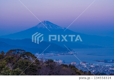 【静岡県】日守山から、夕焼け空が広がった三島方面と富士山