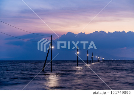 大牟田市 有明海 海苔畑 元旦の夕暮れ、