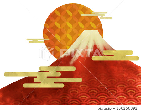 初日の出と波模様の和モダンのイラスト背景