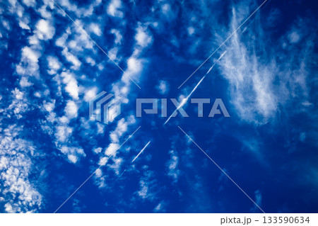 巻積雲のある青空の風景 c-2 高彩度コントラスト