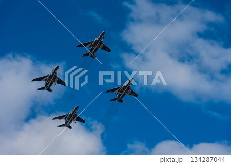 夏の青空と松島基地のブルーインパルス 宮城県東松島市