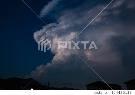 夏の夕暮れの北の空に湧き上がる積乱雲 b-4 暖色