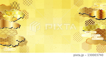 アースカラーでまとめた和柄と組み合わせた山のイラスト