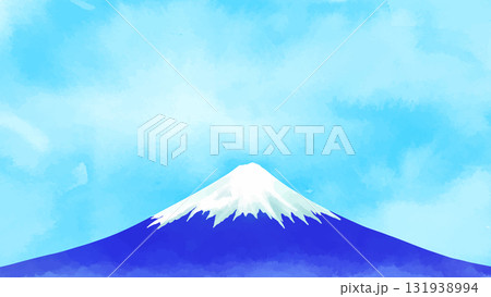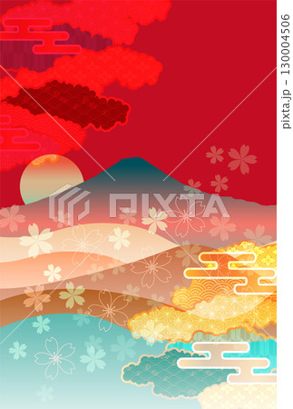 富士山と初日の出の背景 和風な自然の水彩風景イラスト 縦