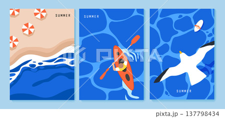 Beach landscape and kayaking scenes