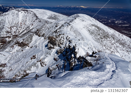 冬の八ヶ岳連峰・硫黄岳稜線から見る野辺山高原