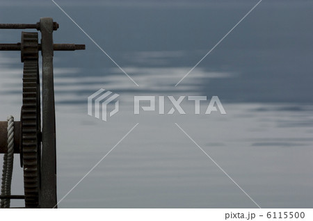 湖畔にある船を渓流する機械
