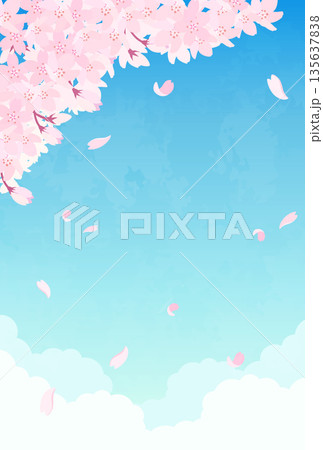 春の空に咲く桜の水彩風手描き背景イラスト-縦型