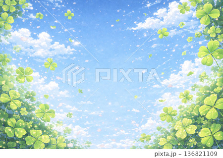 爽やかな四つ葉のクローバー青空の背景イラスト