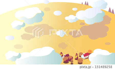 Colorful Vector Illustration of Rolling Hills with Clouds and Vibrant Pastel Tones, Creative Minimalist Background Depicting Nature with Aesthetic Bold Contrast and Artistic Vibrancy