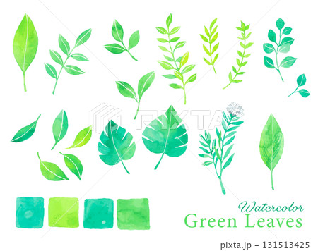 水彩手書きの緑の葉っぱ色々(ベクター)