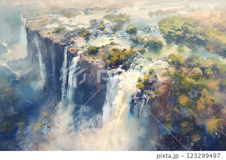 水彩画背景_世界旅行_ブラジル_イグアスの滝_02
