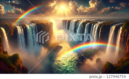 大瀑布で知られる南米ブラジルのイグアスの滝の景色をリアルに描いたAI生成画像