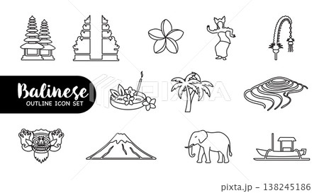 Balinese Outline Icon Set Cultural Symbols Collection.
