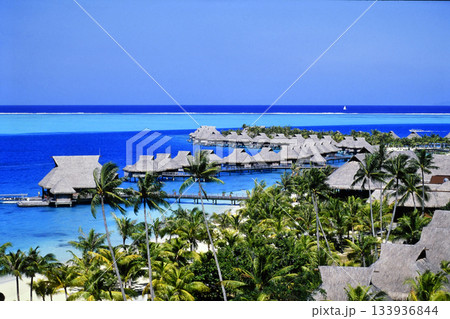 少し古い南半球の風景 ボラボラの水上コテージ