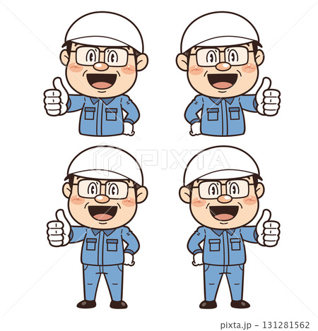 工場で働く男性作業員『ばっちり!』のジェスチャーをしているイラスト|不安全行動・不安全状態・労働災害