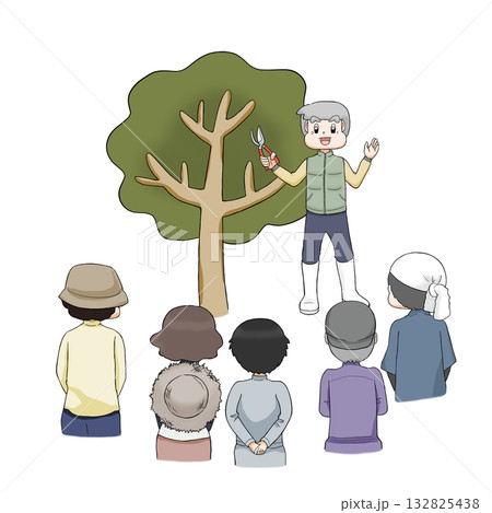寄り添うおばあさん、男の子、女性、親子の後ろ姿