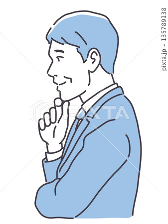 顎に手を当てるスーツ姿の男性 線のみ