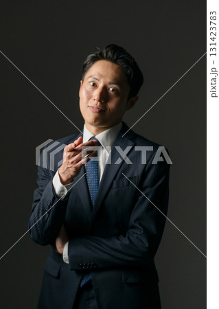 【いろいろな表情】スマートフォンを持ったスーツ姿の男性
