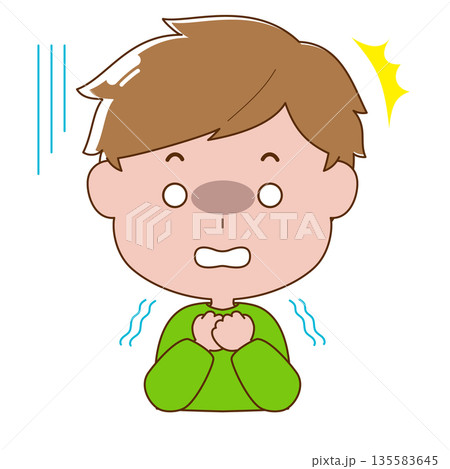 恐怖におびえる男の子のイラスト
