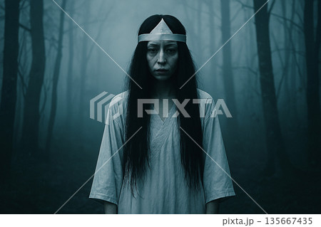 動揺して怯える少女の昭和ホラー漫画風ヘッダーイラスト