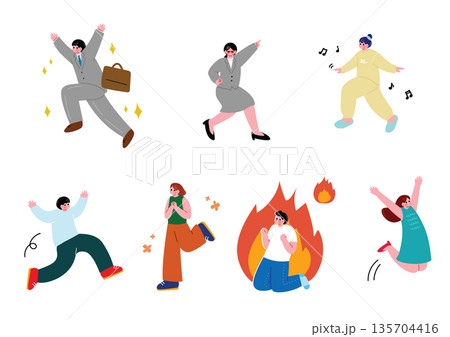 浮かれて喜ぶ人たちのイラストセット