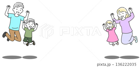 ジャンプする四人家族 ファミリー