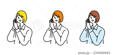 頭を下げて謝罪する、ビジネスウーマン(線画カラー)のイラスト