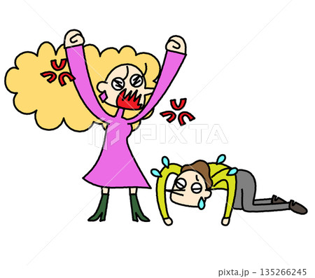 頭を下げて謝罪する人と怒っているビジネスマンのイラスト