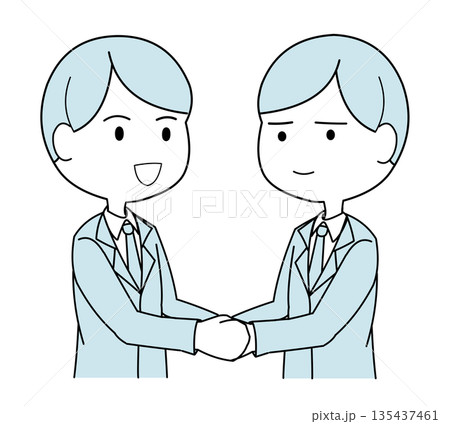 同意や合意、契約成立などで、手をがっちり組み合う2人の男性ビジネスマンのイラスト