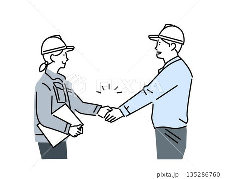 握手をする男性会社員と作業員のイラスト素材