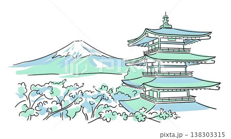富士山と寺 イラスト