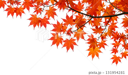 Vibrant red maple leaves cascade from branch, autumnal elegance, use for seasonal designs, nature-inspired layouts, and captivating fall promotions