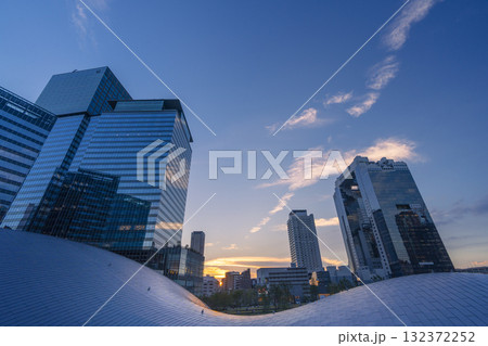 大阪駅前 うめきたの超高層ビル群と美しい夕景