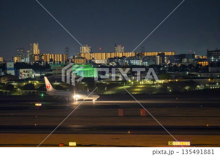大阪空港(伊丹空港)の夜景 タキシング中の飛行機 大阪府豊中市