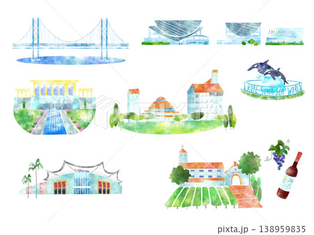 水彩画風 のじまスコーラ 兵庫県淡路市