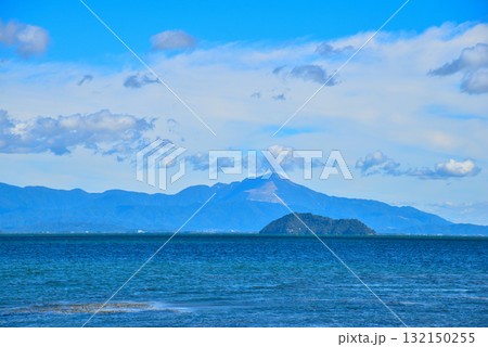 《滋賀県》高島市今津浜からの琵琶湖の風景 伊吹山と竹生島を望む