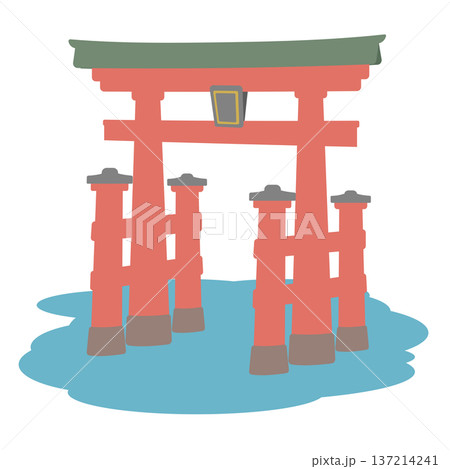 日本の宮島厳島神社の鳥居のイラスト 世界遺産、観光名所 白背景 ベクターデータ