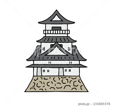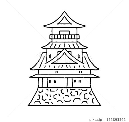 冬の愛媛県の観光地の街並みシンプル線画セット