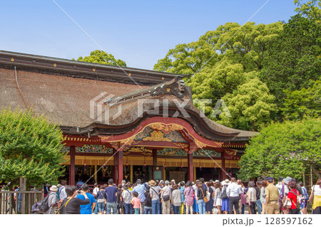 【福岡県】天神信仰の聖地・太宰府天満宮 仮殿にお参りする参拝者