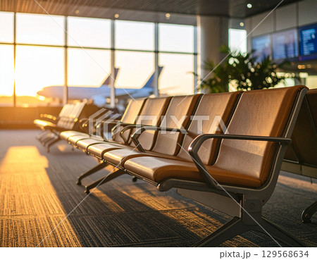 空港の椅子と滑走路の飛行機