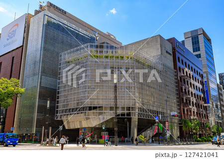 東京 中央区 銀座 数寄屋橋 交差点付近の都市風景 Ginza Sony Parkと東急プラザ銀座