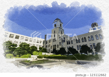 水彩画風 静岡市役所 静岡庁舎本館 静岡県静岡市
