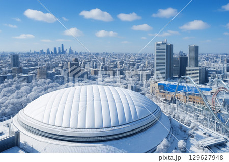 東京ドームホテルより雪景色の東京ドームシティ LAQUA ラクーアを望む