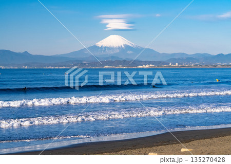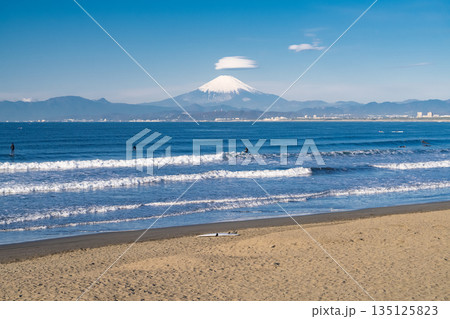 《神奈川県》富士山をのぞむ湘南海岸のビーチ