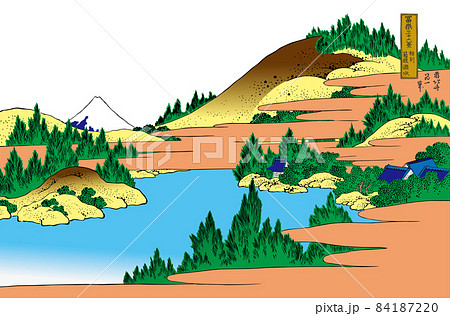 葛飾北斎イメージ相州箱根湖水題名入り明るいバージョン