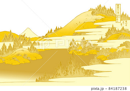 葛飾北斎イメージ相州箱根湖水題名入り金白バック