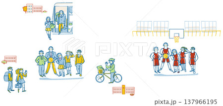 部活動から地域移行へ繋がるバスや自転車での移動と学生の交流シーン