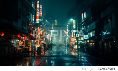 ゲーム背景 夜のカラフルお洒落なレストランがある風景