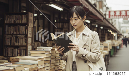 神保町で古本探しをする女性